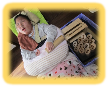大好きな『モルック』で、ぶつかる音をたくさん聞きました。56点出たよ!やったぁ。